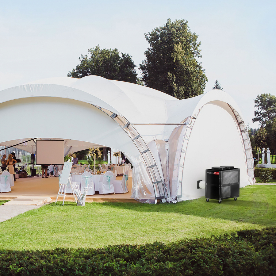 Промышленный мобильный кондиционер выполнен в металлическом ударопрочном корпусе, оснащен шасси и ручками для перемещения. Диапазон рабочих температур для такого оборудования – от +18 до +45°C.